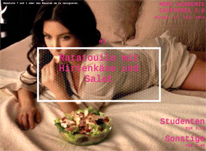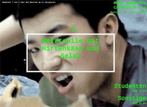 we decided to go for an oldschool trash-like aesthetic and used food related gifs as fullscreen background and a typewriter font to help with it. to make the visit